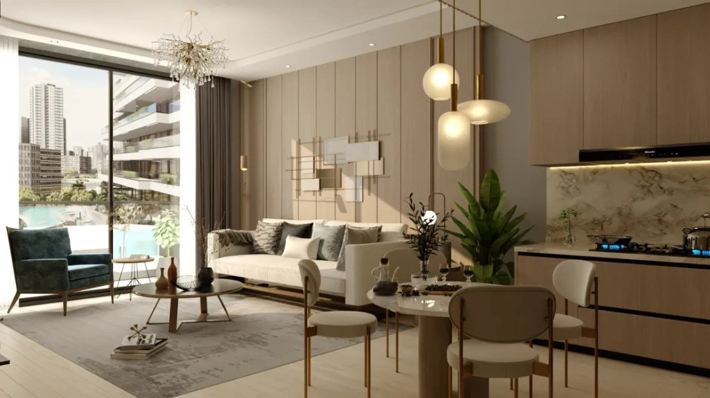 Its location near Emaar Dubai Hills ensures easy access to Dubai Hills Mall, the Australian International School, and notable hospitals, enriching residents’ lifestyles with convenience and elegance. The building’s design and amenities—ranging from private pools and jacuzzi in select apartments to a children’s water park, paddle tennis court, and more—underscore a commitment to luxurious and sophisticated urban living. Large windows illuminate the meticulously crafted interiors, while its proximity to supermarkets and educational institutions adds to its allure, making it an unparalleled residential choice in Dubai.