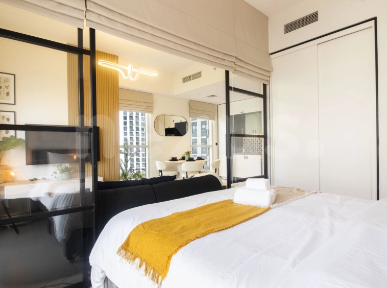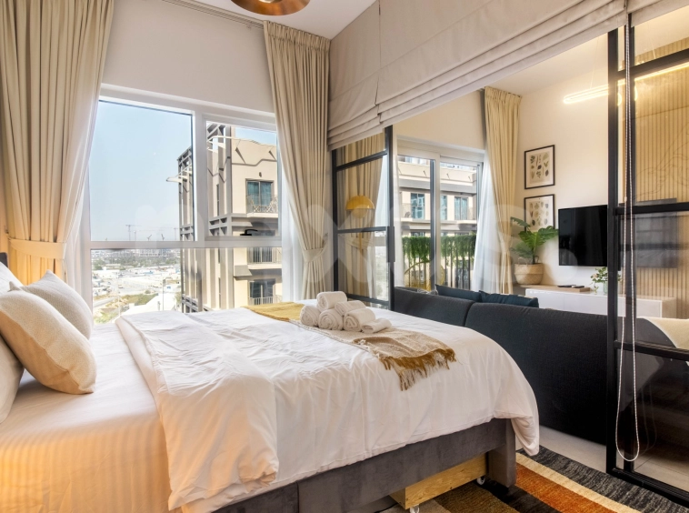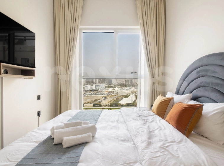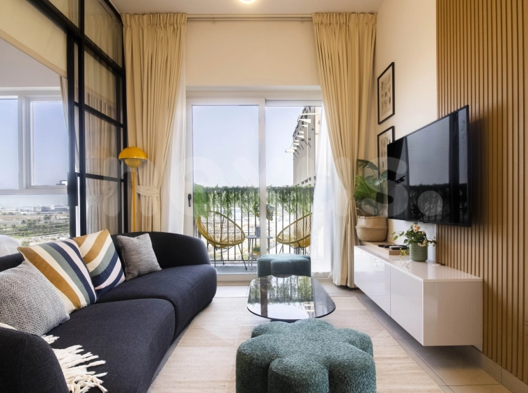 Available for rent. A fully furnished 2-bedroom apartment in Socio, Dubai Hills. Featuring a pool view, modern design, and access to premium amenities, it’s perfect for those seeking comfort and luxury living.