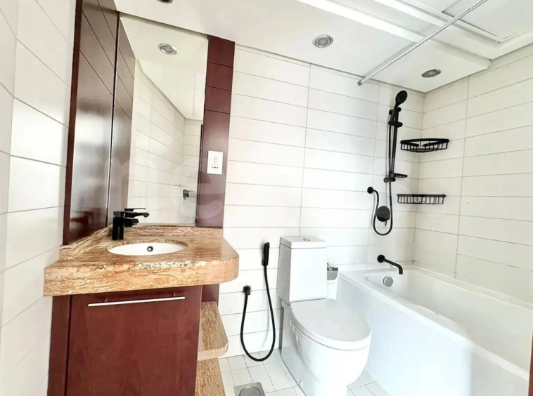 The apartment features 2 spacious bedrooms with built-in wardrobes and en-suite bathrooms, including an additional guest bathroom. High-quality fittings and premium finishes.